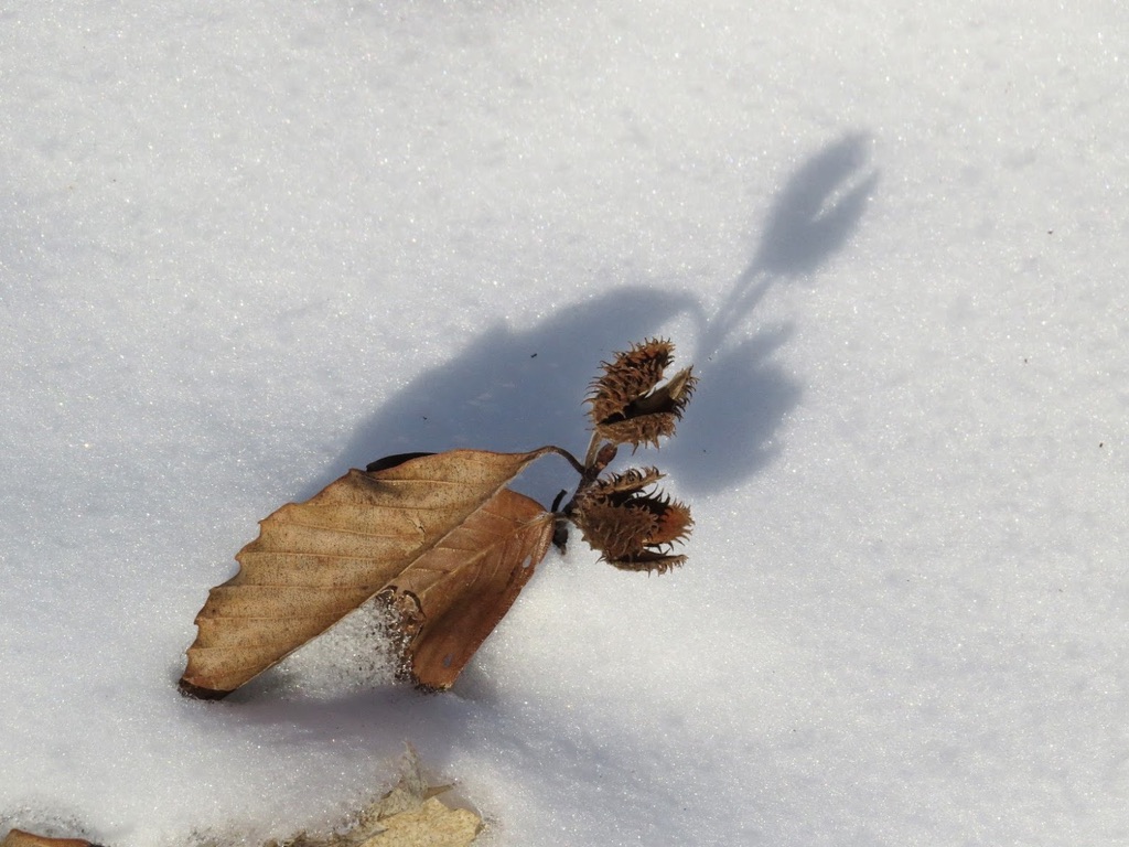 I have taken an obsessive amount of photos of seeds and their pods, feathers, lichen-coated twigs, and leaves that have fallen on snow.